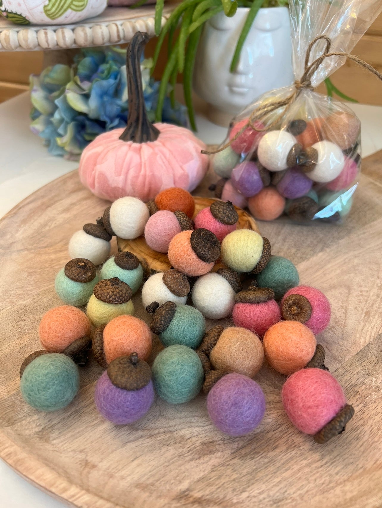 Skip the messy potpourri! Decorate with our NEW, Wool Felt ACORNS! These colors are perfect for Spring, Easter, on in to Summer!