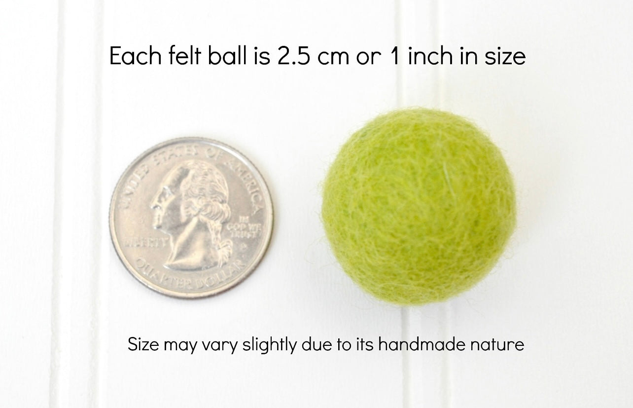 The felted wool ball is 2.5cm in diameter